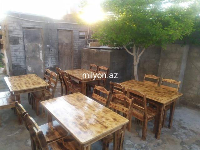 Bağ evləri və restoran (kafelər ) üçün taxta masa ve stullar.İstənilən olcudə taxta masalar və otracaqlar,Həmcinin taxta kreslo və skameykalar vardir . Elanda qeyd olunan məbləğ 1 masa (80*120) və 4 stol dəsti üçün nəzərdə tutulub. Hormetli müşdərilər biz mebel salonu ve ya vasiteci deyilik, bizdə istehsal olunur !!! Yeyfiyyətli keyfiyyətli materiallardan hazirlanir Sifarişə uyun ölçülərdə taxta Masa və oturacaqlar kreslo və skameykalar hazirlanir .