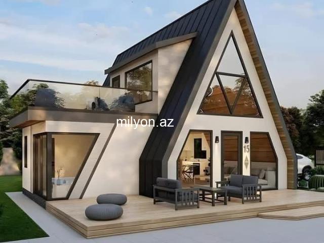 Son vaxtlar A formalı evlerin tikintisinə böyük təlabat var. Biznes layihələri üçün A formalı evlər rəqiblərinizdən fərqlənmək üçün əla seçimdir. Əgər sizdə fərqli dizaynda ev axtarısınızsa o zaman sizlərə A-frame evləri tövsiyyə edirik. Bu evlər: - Daşına bilən - Rahat qurulan - Hər bir iqlim şəraitinə uyğun - Dəniz qırağında və ya dağlıq ərazidə - Zəlzələyə davamlı - Nəmə, səsə qarşı izoliyasiya edilmiş - Təmirli və təmirsiz A-frame evlər minimum 38 kv-dan başlayır. 2 mərtəbə tikdirmək istəyənlər minimum 50 kv-dan başlayan ölçüdə sifariş etməlidirlər. A formalı evlər tam təmirli təhvil verilir. Evin konstruksiyasi taxtadanda yiğıla biler hem dədəmirdən